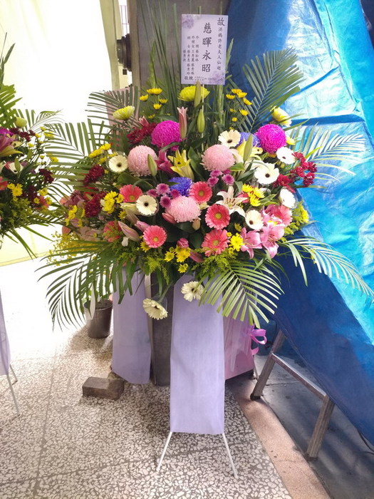 高架花籃,計價數為一對(兩枝花柱)可依照客人需求(婚喪喜慶)指定色系製作,並依照當時時令選用新鮮花材設計