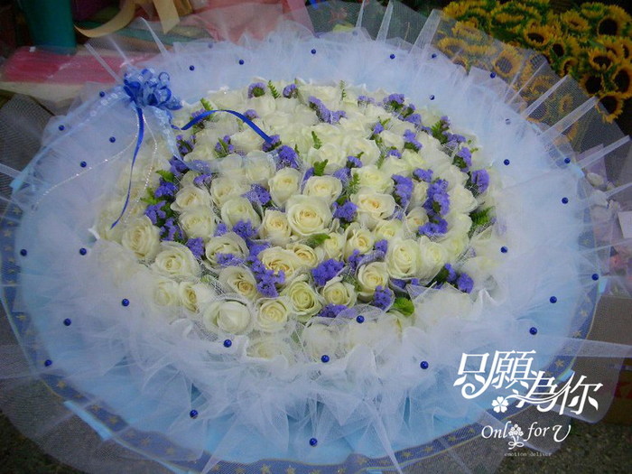 99朵玫瑰 白玫瑰藍色包裝